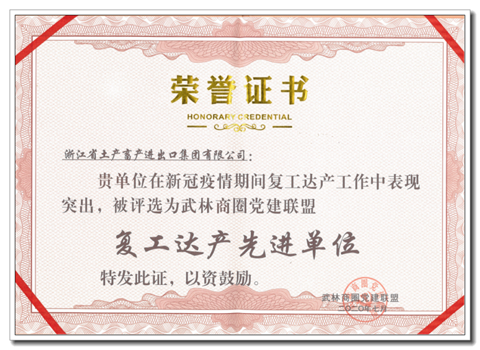 7月15日晚,杭州市武林商圈黨建聯盟舉行2020年年會,來自聯盟各成員單位的300余名黨員參加活動。大會表彰了在疫情防控、復工達產、黨建共建方面的模范單位以及在疫情防控工作中表現突出的先進黨員,省土畜被授予“復工達產先進單位”稱號。浙江省商務廳黨組書記、廳長,聯盟輪值主席盛秋平,杭州市下城區委書記劉穎出席會議,并為獲得表彰的單位和個人頒發證書獎杯。